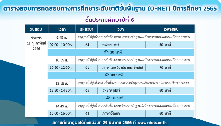 สอบ O-NET ชั้นประถมศึกษาปีที่ 6