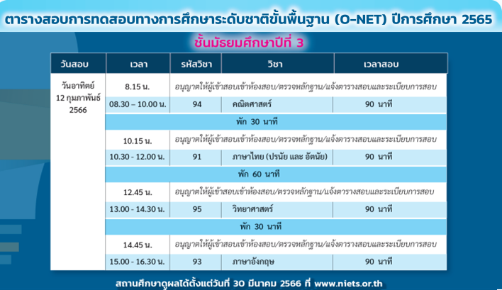 สอบ O-NET ชั้นมัธยมศึกษาปีที่ 3