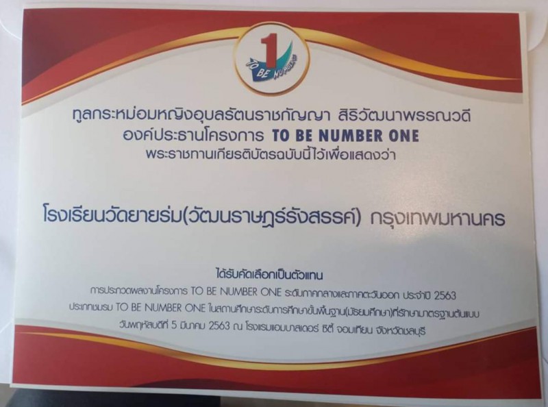 ชมรม TO BE NUMBER ONE โรงเรียนวัดยายร่ม ชมรมต้นแบบรักษามาตรฐานระดับทอง