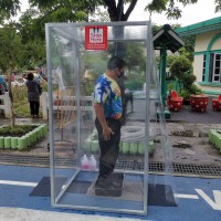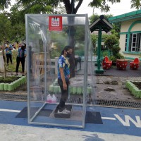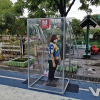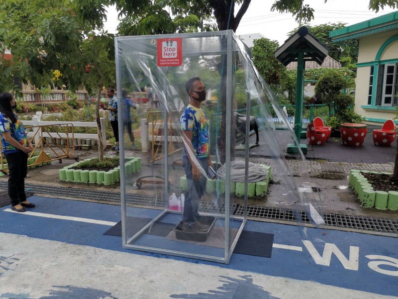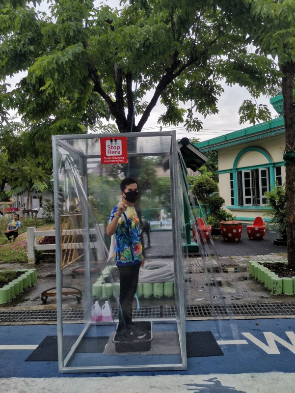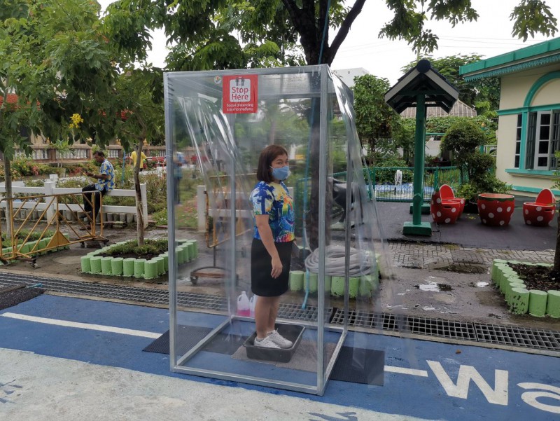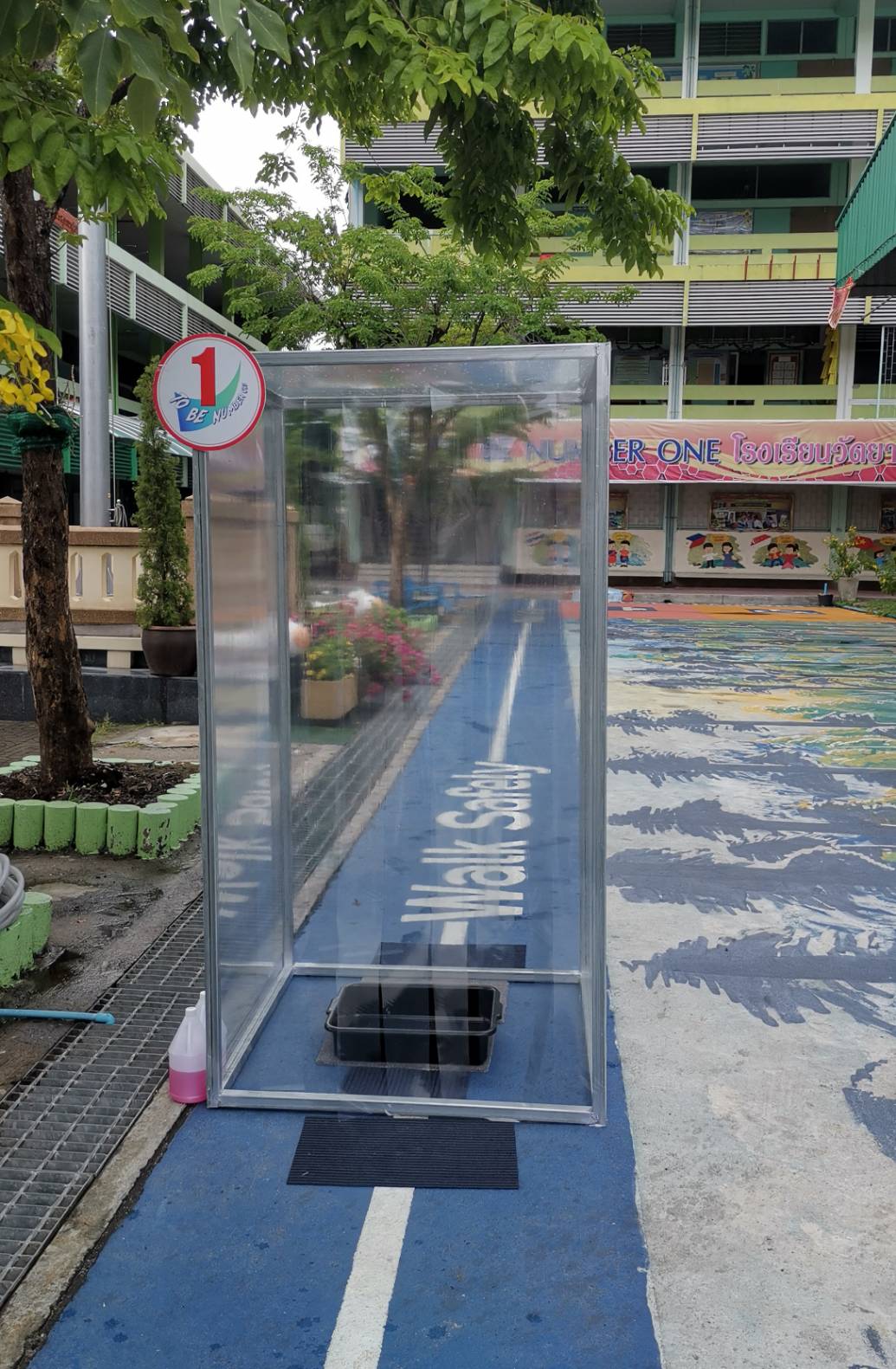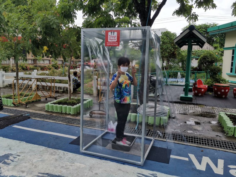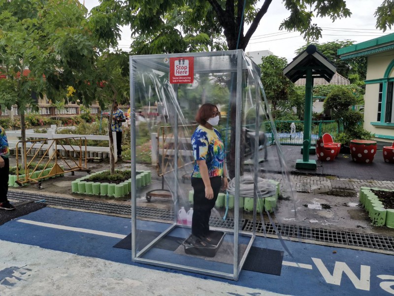 โรงเรียนวัดยายร่มจัดเตรียมตู้ทำความสะอาดรองเท้า และฉีดพ่นน้ำยาฆ่าเชื้ิอป้องกันโควิด-19