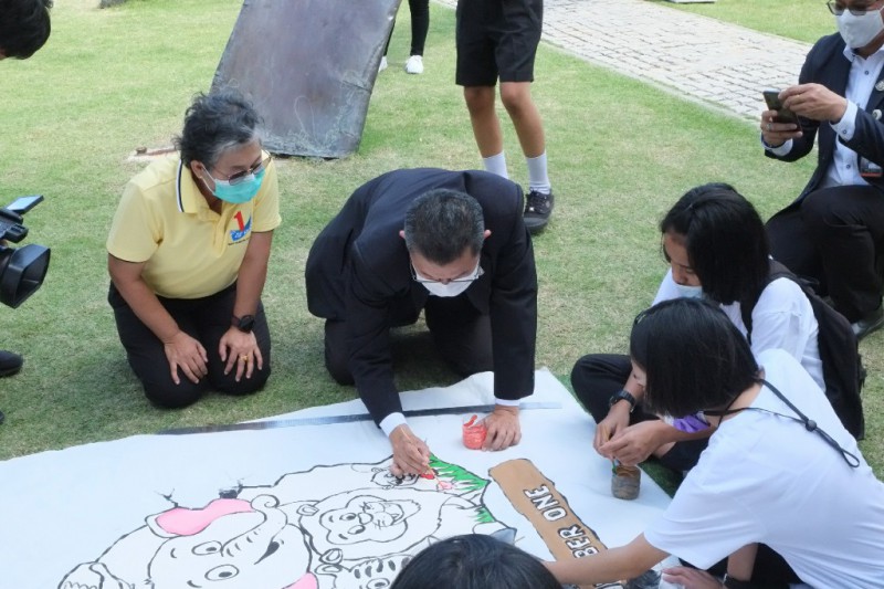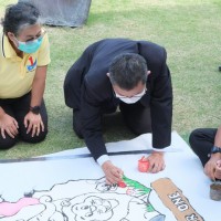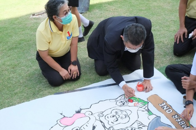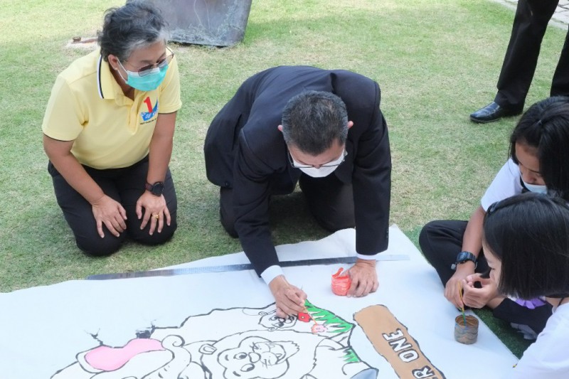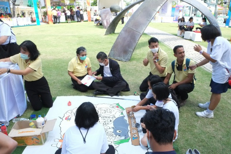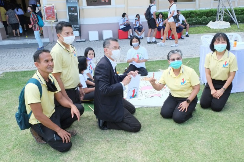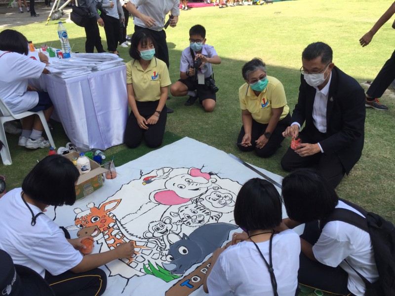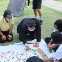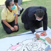ปลัดสำนักนายกรัฐมนตรี ร่วมแต่งแต้มสีบนผืนผ้า TO BE D.I.Y. "เป็นหนึ่งโดยไม่พึ่งยาเสพติด" ของชมรม TO BE NUMBER ONE ร.ร. สังกัด กทม. กทม. ในกิจกรรมวันพ่อแห่งชาติ โซน "วัยใสปล่อยพลัง ปังสุดใจ" ณ มิเซียมสยาม ถ.สนามไชย แขวงพระบรมมหาราชวัง เขตพระนคร กทม.