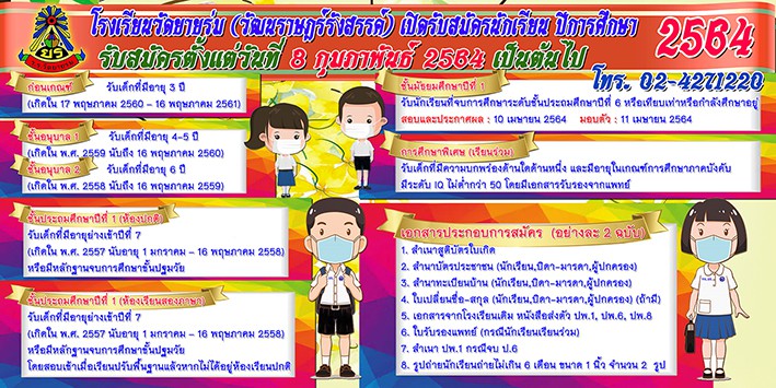 รับสมัครนักเรียนใหม่ ปีการศึกษา 2564