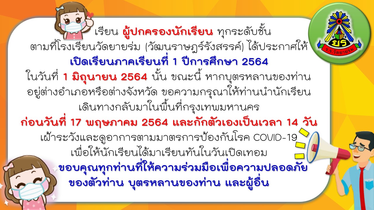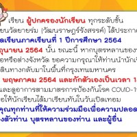 เรียนผู้ปกครองนักเรียน เตรียมตัวนักเรียนก่อนเปิดภาคเรียนที่ 1/2564