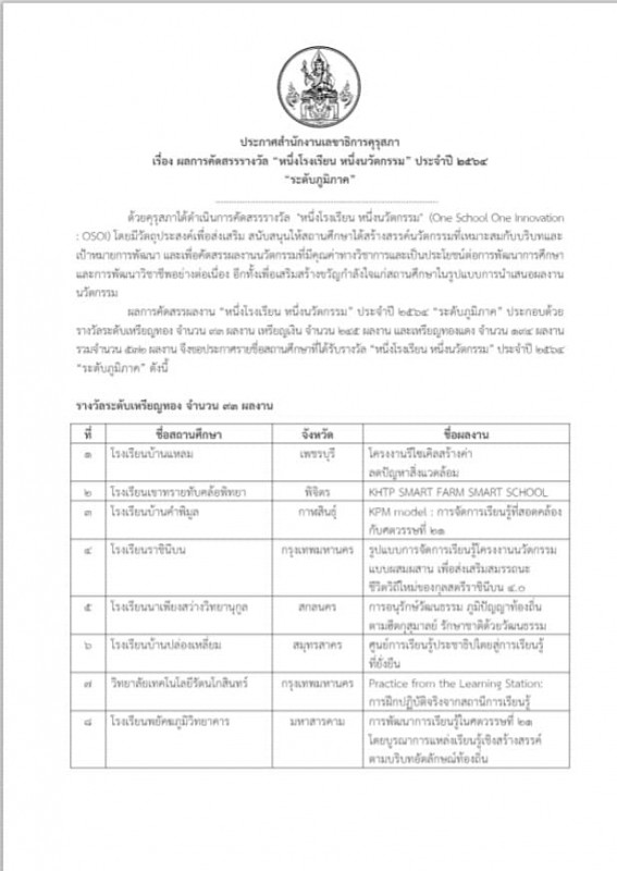 โรงเรียนวัดยายร่ม(วัฒนราษฎร์รังสรรค์)ได้รับรางวัลหนึ่งโรงเรียน หนึ่งนวัตกรรม ประจำปี 2564