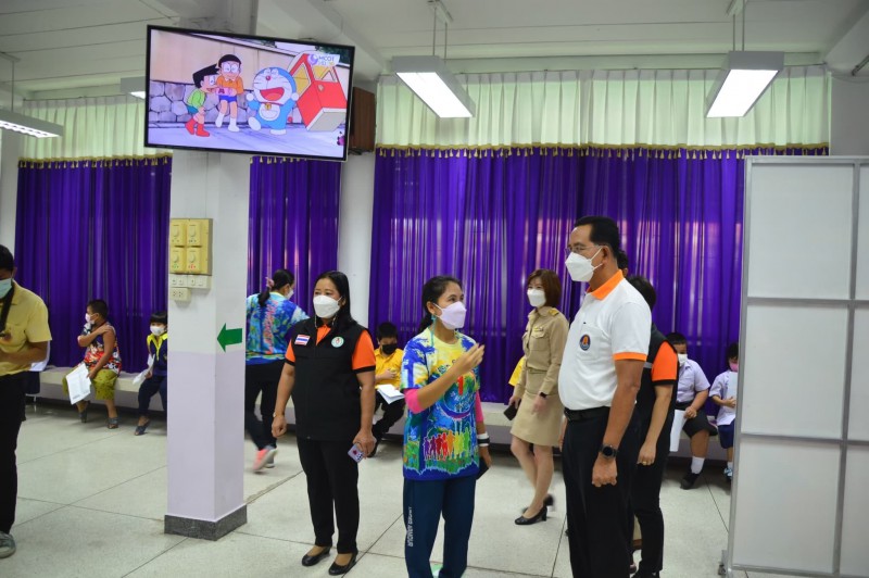 ฉีดวัคซีนเข็มที่ 1 นักเรียนชั้น อ.1- ป.2 ศูนย์ฉีดวัคซีนโรงเรียนวัดยายร่ม