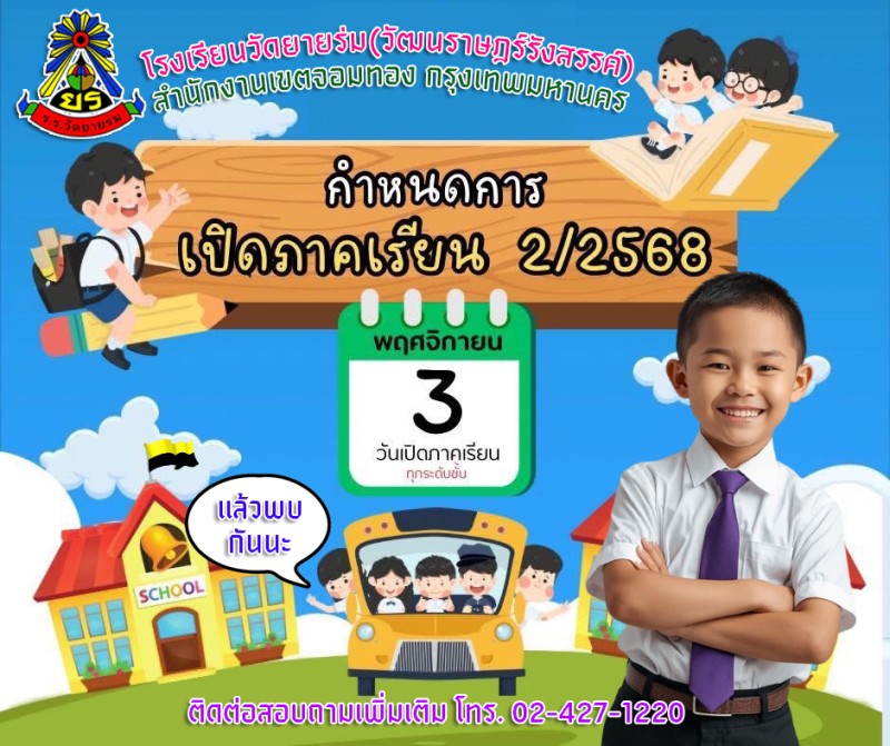เปิดเรียน ภาคเรียนที่ 2/2568 วันจันทร์ที่ 3 พฤศจิกายน 2568