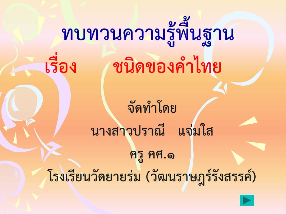 วิชาภาษาไทย ป.3 เรื่องชนิดของคำไทย